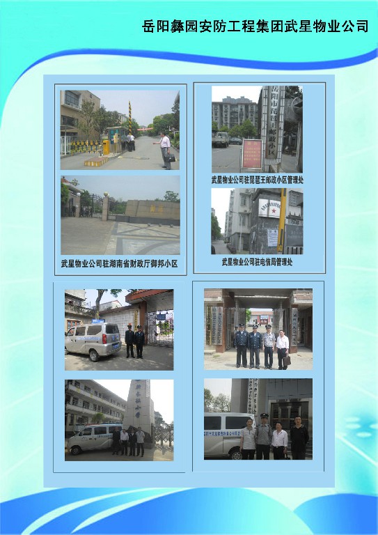 岳陽(yáng)武星物業(yè)管理有限公司繼岳陽(yáng)市武星保安公司于2012年2月成立,武星保安公司是經(jīng)省公安廳批準(zhǔn)成立的民營(yíng)保安公司,為滿足廣大客戶的迫切要求,公司能為客戶提供保安、物業(yè)整體服務(wù)。武星物業(yè)公司技術(shù)力量雄厚,有電梯維修工程師、園林綠化師、水電安裝工程師、消防等專業(yè)技術(shù)人才。為了更好地服務(wù)社會(huì)、培育特種人才,公司與岳陽(yáng)市巴陵職業(yè)技術(shù)學(xué)校聯(lián)合辦學(xué),開(kāi)設(shè)了保鏢保安武術(shù)散打班、物業(yè)管理班、園林綠化技術(shù)班、水電維修班、禮儀班,現(xiàn)有專業(yè)學(xué)員幾百名。公司為各黨政機(jī)關(guān)、社會(huì)團(tuán)體、廠礦企事業(yè)單位、金融機(jī)構(gòu)、房地產(chǎn)開(kāi)發(fā)商居民住宅、賓館、學(xué)校、娛樂(lè)場(chǎng)所等提供人力資源和技術(shù)防范服務(wù)。目前公司有幾十家大客戶,公司優(yōu)質(zhì)的服務(wù)得到了客戶的好評(píng)?,F(xiàn)經(jīng)公安廳市公安局批準(zhǔn)成立了保衛(wèi)科、督查應(yīng)急大隊(duì),為客戶不定時(shí)的服務(wù)和回訪,公司有一批業(yè)務(wù)精、能力強(qiáng)的管理人才,為客戶提供高質(zhì)量的服務(wù)。武星保安物業(yè),保您家安樂(lè)業(yè)。